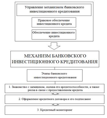 Этапы банковского инвестиционного кредитования представлены на рисунке. Качественная разработка приведенных документов в сочетании с грамотной кредитной политикой банка, осуществлением соответствующих контрольных процедур будут совокупно определять эффективность функционирования механизма банковского инвестиционного кредитования, а также его качество.
