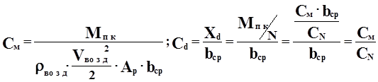 Аналогично устанавливается безразмерный коэффициент момента, который относят еще к средней ширине руля bср, и коэффициент центра давления (рис.25)