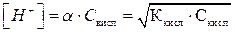 ,где α – степень диссоциации кислоты, Скисл – молярная концентрация кислоты, Ккисл – константа диссоциации кислоты, характеризует силу кислоты: чем меньше константа диссоциации, тем слабее кислота.