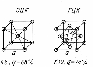 Рис. 1.2.4. Объемноцентрированная (ОЦК) и гранецентрированная (ГЦК) решетки