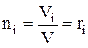 - это отношение парциального объема компонента к объему смеси, т. е.