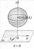 3) d > R. если расстояние от центра сферы d до плоскости больше радиуса сферы R, то сфера и плоскость не имеют общих точек