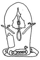 -парашютист, взяв купол обеими руками, с силой выбрасывает его вверх и в сторону вращения под 450.