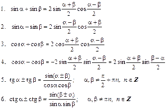 VI. Формулы половинного аргумента(знак – по функции в левой части):