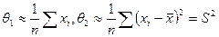 Известно, что эмпирическая функция распределения (плотность) является состоятельной оценкой теоретической функции распределения (плотности), т.е. с увеличением числа наблюдений эмпирическая функция сколь угодно мало отличается от теоретической. Если теоретическая функция распределения зависит от каких-либо параметров, то для оценки этих параметров можно воспользоваться выборочными моментами. Пусть, например, плотность распределения содержит два параметра Θ1 и Θ2 т.е. Θ = (Θ1, Θ2). Первые два момента можно выразить через функцию распределения и Q следующим образом: