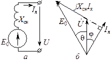 Схема замещения якоря (а) и векторная диаграмма (б) синхронного генератора