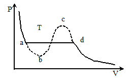 Однако на экспериментальных изотермах не было волнообразного участка, который присутствует на теоретических кривых Р = f(V). Вместо него наблюдался горизонтальный участок (плато) ad.