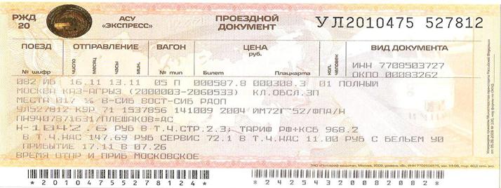 Рис. 5.1. Проездной документ АСУ «Экспресс»