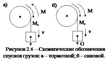 Например: ЭД включается на спуск легкого груза (силовой спуск – см. рисунок 2.4 б).