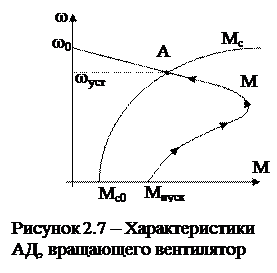 В точке А (рисунок 2.7) Мс=М, значит это точка установившейся работы (со скоростью ωуст)