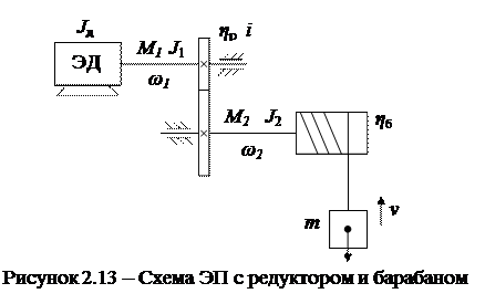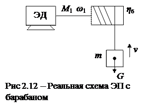 Для расчетов реальную систему (ЭД, редуктор, барабан, груз – см. рисунки 2.10, 2.12, 2.13) приводят в простейшую (см. рисунок 2.9, 2.11).