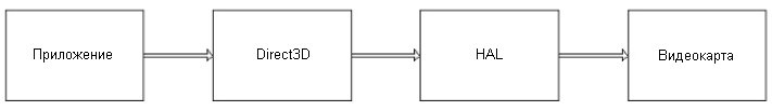 Взаимоотношения между приложением, Direct3D и аппаратурой компьютера показаны на рис. 1.1.