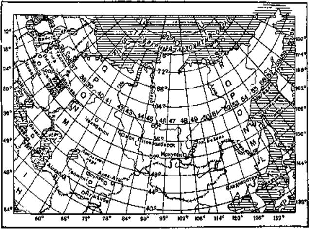 Рис. 8. Разграфка и номенклатура листов карты масштаба 1:1 000 000