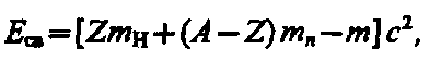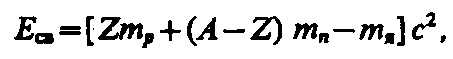 где тp, тn, тя — соответственно массы протона, нейтрона и ядра. В таблицах обычно приводятся не массы тя ядер, а массы т атомов. Поэтому для энергии связи ядра пользуются формулой