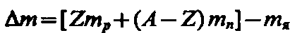 где mH — масса атома водорода. Так как mH больше mp на величину me, то первый член в квадратных скобках включает в себя массу Z электронов.
