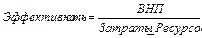 Эффективность национального производства.Существует много показателей, позволяющих оценить эффективность производства. Наиболее общий исходит из определения эффективности – соотношения затрат и выпуска продукции.