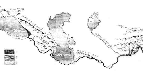 Советские субтропики: 1 — влажные субтропики; 2 — полусухие субтропики; 3 — сухие субтропики.