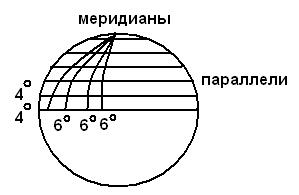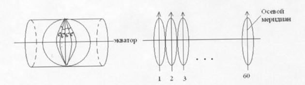 проецируемую часть земной поверхности ограничивают меридианами с разностью 6