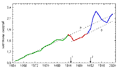 1 – начало антиалкогольной кампании; 2 – начало рыночных реформ;
