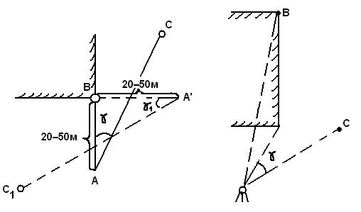 - установить теодолит в т.А в створе одной из стен и на удалении 20-50 м