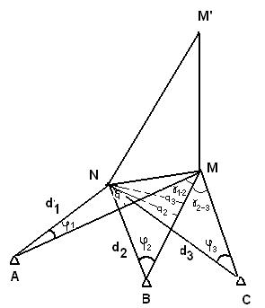 d1d2d3 – расстояния от станций A1B1C1 до основания сооружения