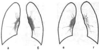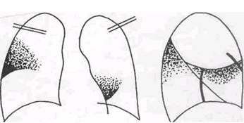 Рисунок 4 - Схемы теневой картины при крупозной пневмонии различной локализации