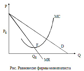 На рис. средняя прибыль монополии представлена вертикальным отрезком KL, а общая прибыль — площадью прямоугольника KLMPE.
