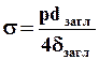 2. Напряжения, возникающие в сферической заглушке корпуса гидроцилиндра, определяют по формуле