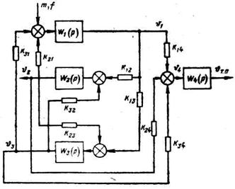 Из схемы следует, что каждое из звеньев охвачено положительными обратными связями. Это означает, что отклонение температуры в печи и их характер определяют взаимным влиянием звеньев.