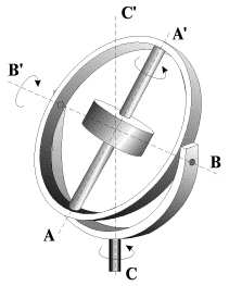 В этом случае моменты всех внешних сил, включая и силу тяжести, относительно центра масс гироскопа равны нулю. Это можно реализовать, например, поместив гироскоп в карданов подвес, изображенный на рис.89.