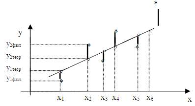 Суть данного метода заключается в том, что квадрат суммы разностей между фактическим значением результативного признака и его теоретическим значением сводится к минимуму.