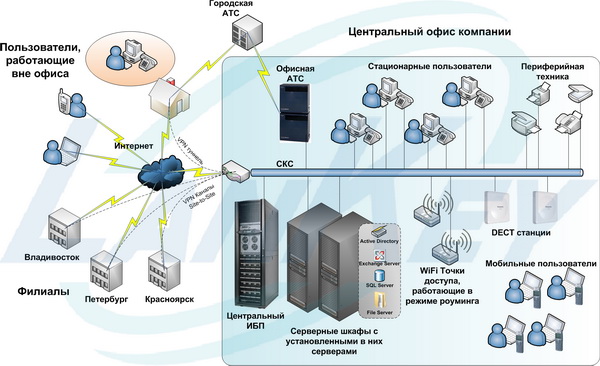 В стандартную сетевую комплексную инфраструктуру любой компании входят компоненты: