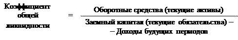 Показник відбиває можливості покриття поточних зобов'язань за рахунок коштів підприємства і його короткострокових фінансових вкладень. При рівному значенні показника загальної ліквідності в двох підприємств кращий пропущене