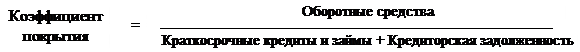 Коефіцієнт оцінює можливість підприємства оплатити свої зобов'язання з залученням, у разі потреби, всіх оборотних коштів, у тому числі і повільно реалізованих активів, таких, як товарно-матеріальні запаси, незавершене виробництво. Підприємство здатне оплатити свої борги, якщо зверне свої засоби в гроші. Банківський критерій, застосовуваний звичайно для оцінки надійності позичальника по цьому показнику, установлює можливість надання кредиту позичальникам, що мають величину коефіцієнта покриття, рівну 2 або більш.