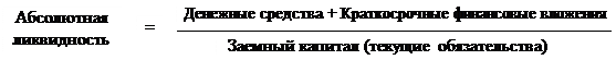 Показник визначає здатність підприємства виконувати свої поточні зобов'язання з ліквідних активів і доповнює показник загальної ліквідності, тому що останній не дає належного представлення про якісний склад тих засобів, що є джерелами покриття поточних зобов'язань.