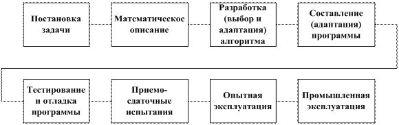 Описанная схема технологического процесса разработки прикладных программных средств отражает их "жизненный цикл", т.е. временной интервал с момента зарождения программы до момента полного отказа от ее эксплуатации.