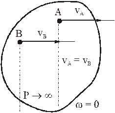 угловая скорость фигуры = 0 и скорости всех её точек в данный момент равны между собой. Такое движение фигуры называют мгновенно поступательным.