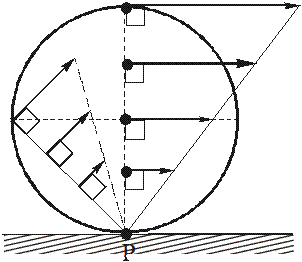 В связи с этим, интересно посмотреть распределение скоростей точек катящегося без скольжения колеса: