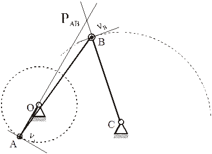 Определение МЦС для шатуна АВ кривошипно-коромыслового механизма: