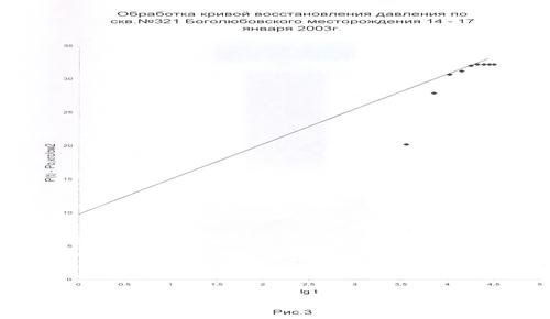 3.Измерим отрезок на оси ординат от нуля до точки пересечения этой оси с продолжением прямолинейного участка кривой восстановления давления А=0,5МПа.