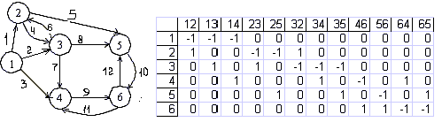 Пример орграфа и его матрицы инцидентности показан на рис. 12.