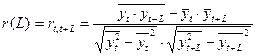 Таким образом, автокорреляция уровней ряда – это корреляционная связь между уровнями одного и того же ряда динамики, сдвинутыми на определенный промежуток времени L. Натуральное число L называется лагом и представляет собой расстояние между членами временного ряда, для которых оценивается корреляционная связь. Например, автокорреляция порядка L – это взаимосвязь двух последовательностей yt = (y1, y2, ..., yn-L ) и yt+L = (y1+L, y2+L, yn ).