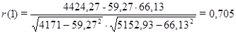 Коэффициент автокорреляции 1-го порядка, согласно (23):