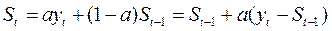 В формуле (4.8.2) экспоненциальная средняя на момент времени t выражена как сумма экспоненциальной средней предшествующего периода St-1 и доли a разницы текущего значения временного ряда yt и экспоненциальной средней St-1.