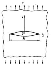 Рис.2.1. Растяжение плоскости с одиночной трещиной (задача Гриффитса)