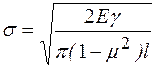 Формулы (2.7), (2.8) определяют критическое напряжение, при котором происходит самопроизвольный, без дополнительной работы внешних сил, рост имеющейся в теле трещины длиной 2l.
