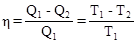 , где: Q1 – теплота, сообщенная рабочему телу при температуре Т1 от источника тепла; Q1 – теплота, отданная телом при температуре Т2 холодильнику.