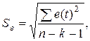 В качестве меры точности применяют несмещенную оценку дисперсии остаточной компоненты, которая представляет собой отношение суммы квадратов уровней остаточной компоненты к величине (n-k- 1), где k - количество факторов, включенных в модель. Квадратный корень из этой величины (Se) называется стандартной ошибкой оценки.
