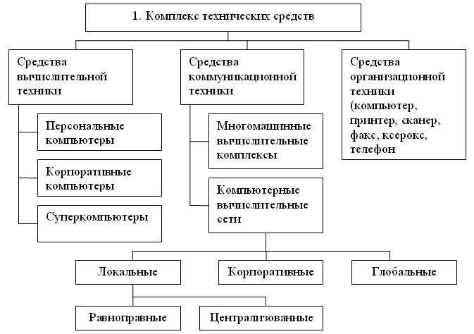· комплекса технических средств, состоящего из средств вычислительной, коммуникационной и организационной техники;