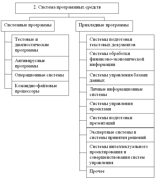 · системы программных средств, состоящей из системного (общего) и прикладного программного обеспечения;